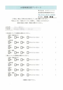 A様アンケートいただきありがとうございます。日々工事施工内容はもちろん私達がお客様に何ができるのか職人踏まえて考えております。