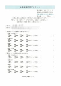 弊社では「お客様満足度アンケート」を行っています。お客様よりうかがった声は、貴重な情報として社内で共有し、サービスの向上・改善に反映しています。