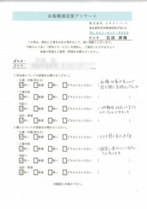 キッチンのレンジフード・キッチンパネル交換工事をご依頼いただきました、大和市にお住まいのS様より施工後のアンケートを頂戴しました。