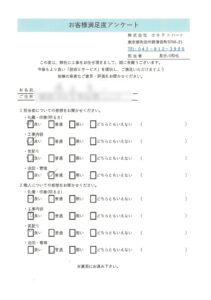 弊社では「お客様満足度アンケート」を行っています。お客様よりうかがった声は、貴重な情報として社内で共有し、サービスの向上・改善に反映しています。