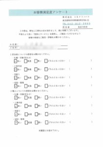弊社では「お客様満足度アンケート」を行っています。お客様よりうかがった声は、貴重な情報として社内で共有し、サービスの向上・改善に反映しています。