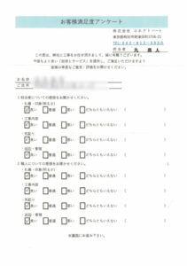 弊社では「お客様満足度アンケート」を行っています。お客様よりうかがった声は、貴重な情報として社内で共有し、サービスの向上・改善に反映しています。